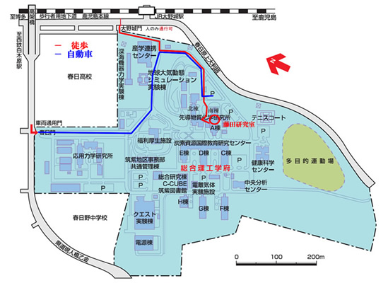 | 車 | 春日公園側の 春日門 からのみ入構可能です。 春日門の場所(筑紫キャンパスマップ中央左端)。 |