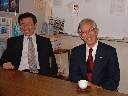 春日市で行われたセミナーの際に筒井先生が白川先生に