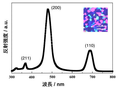図6ブルー相Iの反射スペクトルと偏光顕微鏡写真