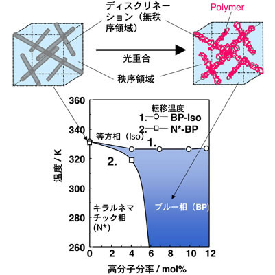 図7高分子安定化ブルー相の相図と高分子の凝集状態の模式図。