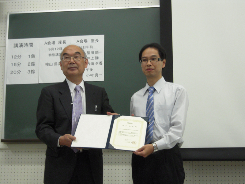 河津 信次が第49回化学関連支部合同九州大会にて、無機化学部門で優秀研究発表賞を受賞しました。