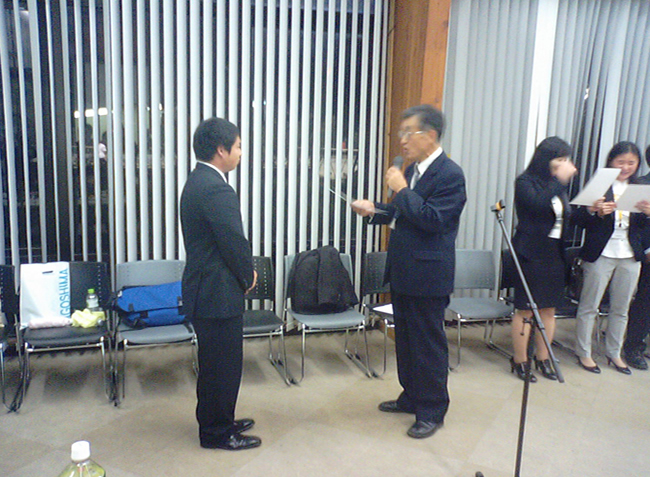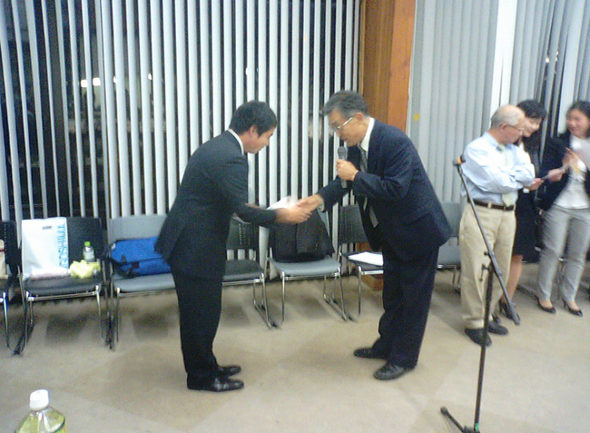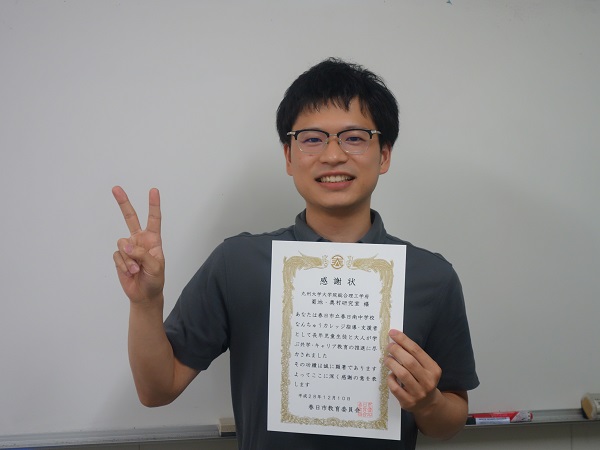 優秀な成績を収めたM2の松尾さんがメジャー賞を授与されました。おめでとうございます。