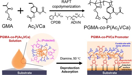 Adhesion Promoting Copolymer of Acetate-Protected Vinyl Catechol with Glycidyl